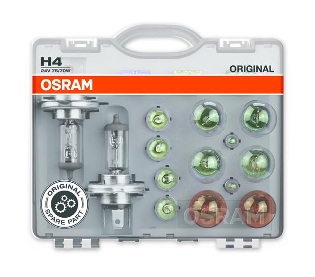 H4: garnitura H4 vsebuje dve H4 žarnici za glavne luči, dvojno količino šestih najpomembnejših pomožnih žarnic ter 2x3 ploščate varovalke.